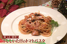 ④ ③に①のトマトジュースを入れて煮立たせ、塩・こしょうで味を整え、パスタをからませる。