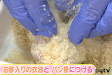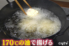 3.②をⒶにくぐらせ、パン粉をまぶし、170℃に熱した揚げ油でカラッと揚げる。