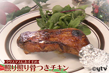 ⑤ アルミホイルにチキンを移し、皿に残ったタレをかける。オーブントースター(1200w)で8分加熱したら完成。