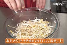 ➁水気をしっかりと切り、別のボウルにもやしを入れる