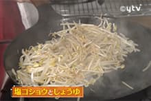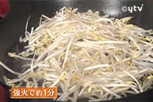 ④強火で熱したフライパンに、もやしを入れて強火で1分炒める