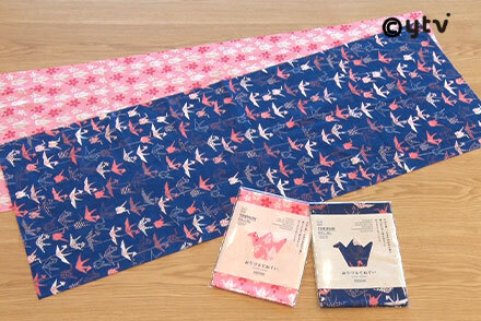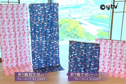 ・折り鶴和手拭い ブルー・ピンク 各1,210円
