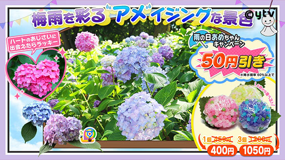 2024年6月19日(水) けさのおトクちらし:「長居植物園あじさい 雨の日割引 金平糖」