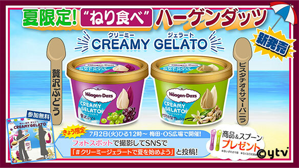 ※フォトスポットでの写真撮影、XかInstagramに投稿いただいた方に、お1人様ミニカップ CREAMY GELATO(クリーミー ジェラート)『贅沢ぶどう』、同『ピスタチオ&サマーバニラ』いずれか1種類と、ノベルティ(2024年夏限定!ミニカップ クリーミージェラートスプーン)どちらか1本の配布となります。