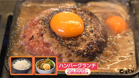ハンバーグ200gに卵トッピング1,480円をお店で「す・またん!を見た」で1,000円で提供!