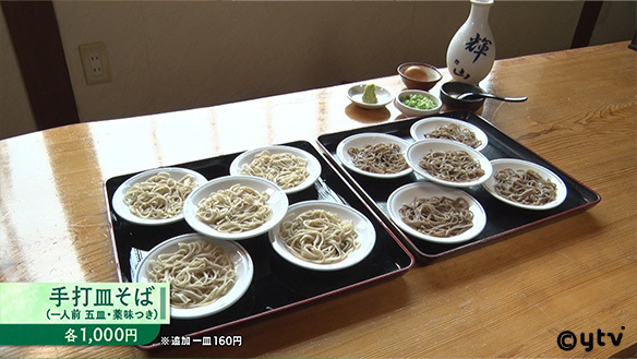 手打皿そば(一人前 五皿・薬味付) 各1000円
