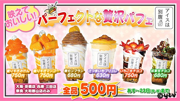 ●概要:全品500円で発売 ※こどもアイス、アイスパフェは対象外