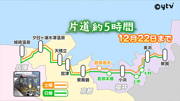 運行日:12月22日までの土曜(城崎温泉行き)・日曜(敦賀行き)