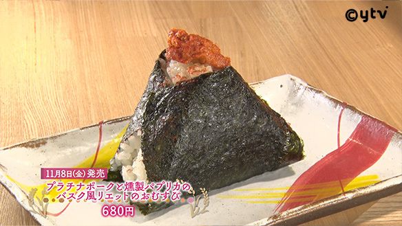 プラチナポークと燻製パプリカのバスク風リエットおむすび 680円
