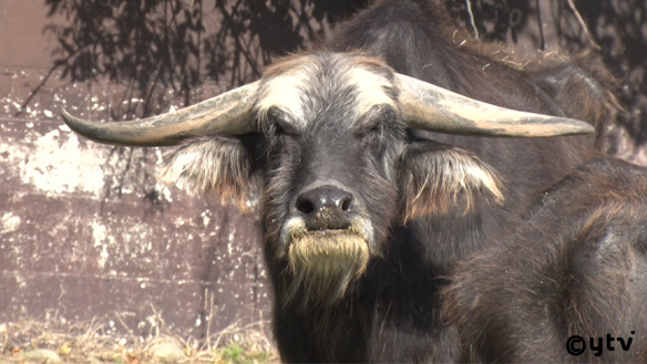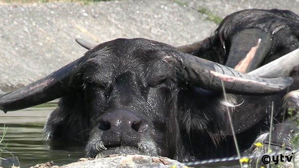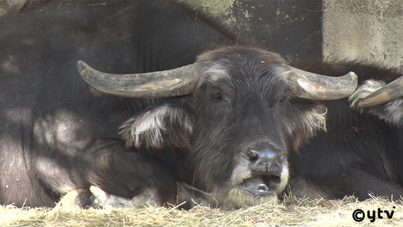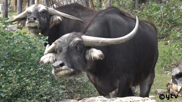 ウォッチしたのは、とっても大きなツノが特徴のアジアスイギュウ。