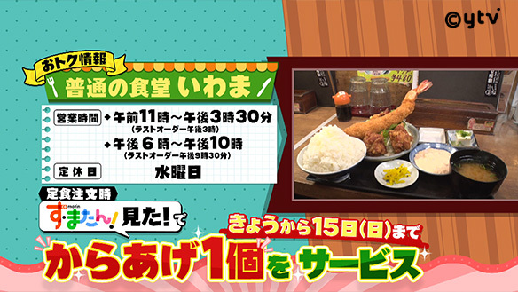定食注文時「すまたん見た」で唐揚げ1個サービス