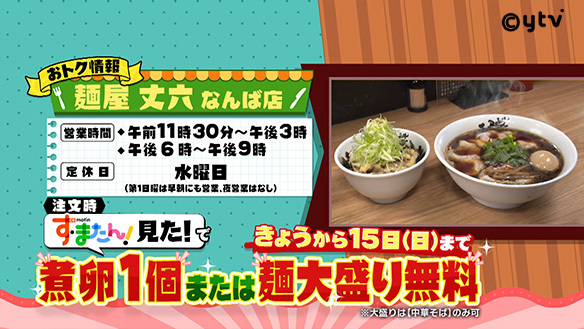 「すまたん見た」煮卵1個サービスor麺大盛り無料※中華そばのみ可能