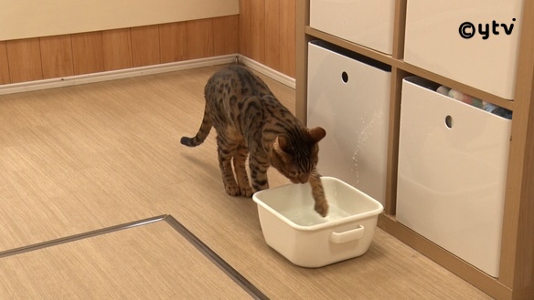 また、猫って水を怖がる生き物なんだけど、ベンガルは水遊びが大好き。