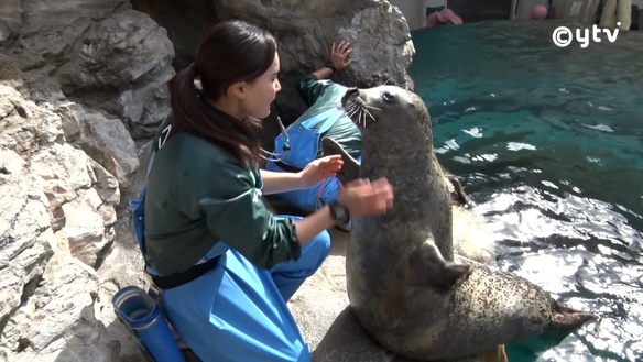 朝と夕方にご飯をあげている。その時間にアザラシのレーニングを行っているんですが、