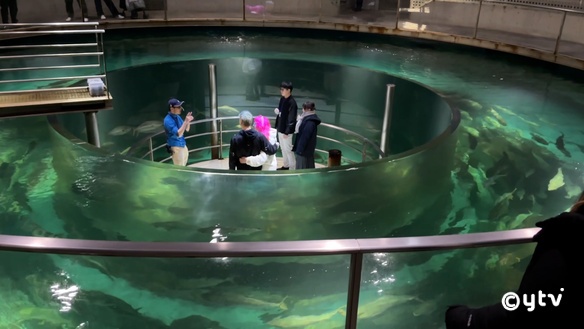城崎マリンワールドでは、ドーナツ型の大きな水槽の真ん中から