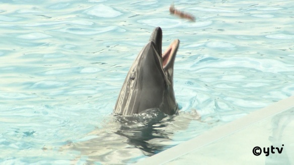 わ!魚を口でキャッチしているよ!じょうずに口をあけているね〜