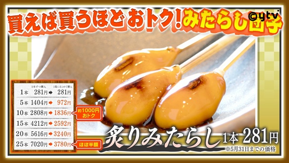 けさのおトクちらし:「買えば買うほどおトク!炙りみたらし」