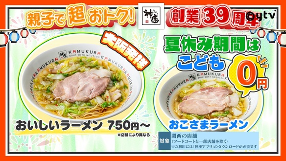 麵類を注文した大人1人につき、子ども1人まで「おこさまラーメン」が無料