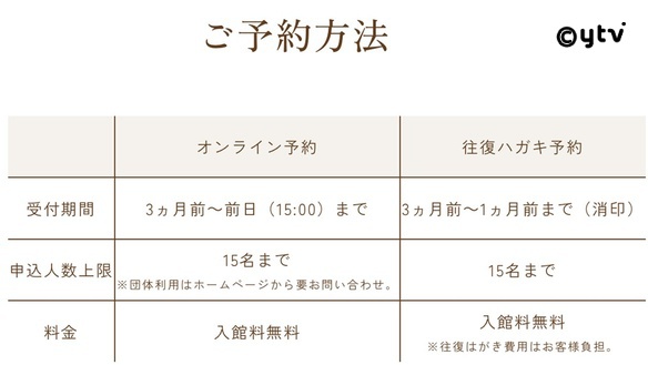 ※予約は下記 公式ホームページから、もしくは往復ハガキ