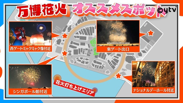 けさのおトクちらし:「万博 打ち上げ花火どこから見るか?」