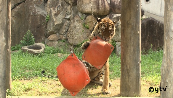 (トラも これだけ暑いと動き回らない。ちょっとでも運動してもらおう