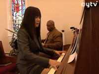 黒人教会の聖歌隊のメンバーはこの街に住む主婦、そしてプロの歌手として活躍していたブラザーホワイトさん。ゴスペルは、奴隷としてアメリカに連れて来られたアフリカ人がキリスト教と出会い、独自のリズムと賛美歌を融合させて生まれた音楽。典子さんは歌の伴奏だけでなく牧師さんの説教にタイミングよくピアノで合いの手を入れ、盛り上げる役も担っている。そしてそれはすべてアドリブだという。
