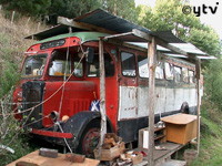 案内されたバスは60年前のおんぼろバス。ここにご主人と二人で暮らすという敦子さん。中はリフォームされ、キッチン、リビング、ベットルームまで揃った2LDK。家賃は約2万6千円。水道や電気も通っている。最初は2週間くらいのつもりで始めたバス生活だが、その居心地の良さが気に入ってしまい、もう10ヶ月もバスに住んでいるという。「日本みたいに時間に縛られているというストレスが無い。短気が治った」と敦子さん。