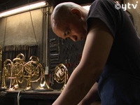 直也さんは、金管楽器製造の人間国宝、フィリップ・ロウさん(58)の元に弟子入りした。