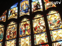 ヨーロッパのステンドグラスは、ガラスの上に「絵付け」を施した絵画的なものが主流だ。