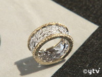 フィレンツェへは1万キロ、14時間の旅。中世から芸術や工芸技術が花開いたルネッサンス発祥の地で、今もなお様々な職人技が息づいている。そんな宝石店や金細工店が軒を連ねるベッキオ橋近くに、純世さんのジュエリー工房はある。共に働くのは金細工職人で、純世さんのパートナーでもあるマルコさん(52)。純世さんがデザインし、マルコさんが製作する共同作業で、お客さんのオーダーに合わせて一点一点を手作りしている。中でも、カッティングの技術だけで金属にダイヤのような輝きを持たせるという"トラフォーロ・フィオレンティーノ"は、作れる職人も減り、マルコさんが最後の世代と言われている。