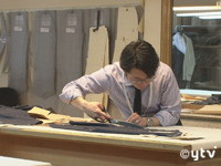 スーツ作りはお客さんの詳細な体のサイズを測ることから始まる。体型に関わるあらゆるデータを収集し、それを元に健次郎さんが作るのが"パターン(型紙)"と呼ばれるスーツの設計図。体型に合わせてミリ単位で調整していくこのパターン作りができるのは、フランスでも一握りの職人だけ。この会社では健次郎さんしかできない作業だ。これを設計図として裁断から縫製まで2ヵ月以上かけ、35人の職人全員で一着を作り上げていく。そのすべての工程をチェックするのも健次郎さんの仕事だ。