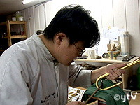 朋海さんはトランペットの設計から組み立てまでをすべてこなす。およそ100あるパーツは専門の職人に依頼するが、一番こだわって必ず自らの手で作るのが、音色を決定づける「リードパイプ」。真鍮の管をバーナーであぶって柔らかくし、それを大きさの違う穴型に順に通しながら、先端を徐々に細くして作る。ほかにもトランペットの先端にあたる"ベル"を曲げるのも朋海さんの手作業だ。いずれも1ミリの違いが音に大きく影響するという熟練の技を要する作業だ。