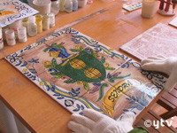 大学時代にスペイン美術を学んだあやこさんは、その豊かな色彩に惹かれ、17年前バレンシアの陶芸専門学校に入学。首席で卒業した。あやこさんが制作するスペイン独特の伝統タイルは、虹の7色が基本。まず粘土を成型して2日間天日干しし、14時間かけて窯で焼く。さらにうわ薬をかけて再び14時間窯入れ。最後に自身のデザイン画を元に絵付けをして3回目の窯入れをする。980℃という低温で焼くことで、スペインタイル独特の鮮やかな色合いが出るのだという。「スペイン人の生活の中に自分の作品が溶け込んでいるのを感じる時が一番嬉しい。こんなに打ち込めるものに出会えて運が良かった。私は幸せだと本当に思えます」と、あやこさんはしみじみと語る。