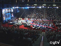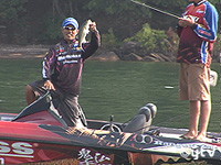 大会期間は4日間。参加選手は全米のトップランカー78人。1日に釣ったバスのうち、大きいものから5尾を計量し、総重量で競う。アメリカではゴルフより人気の高い釣りだけに、期間中は町を挙げてお祭りムードだ。初日は好調にバスを釣り上げた真一さん。1日を終えた結果は、19位というまずまずの順位で2日目に駒を進めた。