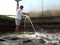 龍朗さんがブラジルに来たのは33年前。大学で養殖の勉強をし、就職した商社では、スッポン養殖のためブラジルに派遣された。その後、龍朗さんは独立し、さまざまな魚の養殖に挑戦するも、失敗の連続。諦めかけていた頃、ピラルクと出会い、以来14年間、研究を続けてきた。