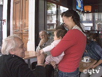 パリ11区の大通りに面した「アチチュード・カフェ」。ここでかおりさんはウェイトレスと経理を担当し、ジェレミーさん、飲食業一筋30年の義母・アンマリーさんと共に店を切り盛りしている。オープンして2年半。かおりさんは4ヵ月前に長女レアちゃんを産んだばかりだが、カフェはいつも常連客が引きも切らず、かおりさんはゆっくり子供と過ごす時間を持てないほど忙しい毎日を送っている。