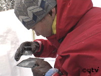 18歳のとき語学留学でカナダにやってきた知明さんは、やがて"この雄大な自然の中で人生を送りたい"と、スキーパトロールの職を得た。だが2年目、知明さんは雪崩に巻き込まれ、その恐怖を身をもって知ることに。それを機に、雪崩についての専門的な勉強を始めたが、そんな中で、友人たちが雪崩で亡くなるつらい経験もした。「苦しく悲しかった。少しでもそういうことが減ってくれれば…」。そんな思いで知明さんは雪山と向き合う毎日を送っている。スキーパトロールとはいいながらも、スキー場だけでなく山全体、そしてふもとで暮らす人たちの命も預かる…それが雪崩予報官の仕事なのだ。「裏方の仕事です。お金のためにやっているのではありません。それだけのパッション(情熱)があるからです」と、知明さんは自負する。