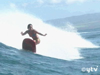 毎朝、海岸に据付けられたリアルタイムカメラの映像をパソコンでチェックし、いい波が見つかればすぐに海へと車を走らせる希珠さん。日本では台風レベルの大波の中へ漕ぎ出し、屈強な男性サーファーに混じってビッグウエーブを捉え、乗りこなすその姿は、華麗で逞しい。常に危険と隣り合わせで、希珠さんもこれまで何度も怪我をし、顔を20針以上も縫っているという。そこまでしてサーフィンに惹かれるのは「波に乗っていると全てが洗い流される感じ…一瞬無になれるから」と語る。