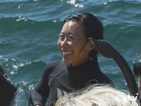 知洋さんはこの海域にいるイルカ約200頭のうち、80頭は見分けがつくという。イルカの群を見つけると、知洋さんは水中モーターを手に真っ先に海へ入る。水中をクルクルと泳ぎ回ってイルカたちの興味を引くのだ。船の周りにイルカを長く留めておけるかどうかが知洋さんの腕の見せどころ。イルカを十分慣らしたところでツアー客が海へ入る。野生のイルカと泳ぐという貴重な体験にお客さんたちも大興奮。その間も知洋さんは休むことなくイルカにアプローチし続ける。体力的にはキツイが、お客さんにとっては一生に何度もできるわけではない貴重な体験。知洋さんは時間の許す限り何度もトライする。「このツアーには夢を持って来られる人が多い。夢が叶い泣きながら海から上がってくる人もいる。その瞬間が本当に嬉しい」。知洋さんはこの仕事のやりがいをそう語る。