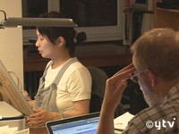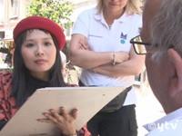 2人の間にはもうすぐ2歳になる長女がおり、恵美さんは現在2人目の出産を目前に控えている。店先では、大きなお腹の恵美さんが初対面のお客さんを前に、その人の特徴や、一番良い表情を瞬時に捉え、一気に描いていく。ベルギーでは珍しい似顔絵のライブに、街を行く人々も興味深そうに見入っている。