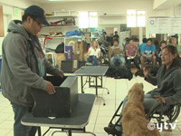 介助犬には「座れ」「ドアを開けろ」など、コマンドと呼ばれる100ほどの命令を組み合わせ、覚えさせなくてはならない。基礎の授業では仔犬を使ってお座りや伏せなどの教え方を学び、成犬を使った実践的な授業では、スーパーのレジなど、実際の現場を想定して車椅子を使った訓練を行う。佐恵さんはインストラクターとして生徒たちに指導する。「犬たちは褒められるのが大好き。そのために仕事をするんです。だからたくさん褒めてあげるんです」。佐恵さんは教える際のコツをそう語る。