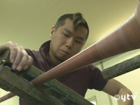 1枚の金属板を、いかに手際よく丸い筒状に仕上げていくかが腕の見せどころ。一見、木槌でガンガンと叩いているようだが「金属がどこに延びていくのかを常に予想しながら叩いてます。実は繊細な作業なんですよ」と広人さんはいう。100分の5ミリずれるだけで音色や音程が変わってしまう繊細な仕事だが、広人さんは「そこが醍醐味」と語る。月収はおよそ24万円。ドイツでは手作りベルの需要が高く、マイスターの資格をもつ楽器職人よりも、稼ぎが多い場合もしばしばだという。