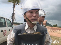 古賀さんが所属するのは日本の国際NGO・JMAS(日本地雷処理を支援する会)。住民や警察からの通報を元に、カンボジア政府の第三者機関「CMAC」のメンバーと共に不発弾の撤去を行いながら、自衛隊で培った不発弾処理のノウハウをカンボジアチームに伝授している。扱うのは迫撃砲弾や手榴弾、対人地雷など。こうした不発弾はカンボジア全土にまだ800万個以上も残っているという。さらに、不発弾を回収する際には、その地域の小学校にも必ず立ち寄る。子どもたちに危険回避の講習も行っているのだ。「被害者がゼロになってくれたら一番いい」。カンボジアの将来を担う子どもたちを守ることが、古賀さんの強い願いだ。