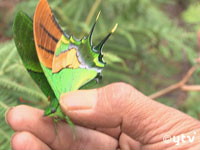 日本の枠を飛び出し、今も少年の心を持ち続けたまま虫を追う若原さんの姿に、草川さんは「すばらしい。年は取ったけど、中身はまったく変っていない。羨ましいですね」としみじみ。そんな草川さんから若原さんに届けられたのは、蝶の標本。30年前、若原さんと2人で苦労をして探した「ベニモンカラスシジミ」だ。当時、若原さんは蝶を捕ることしか興味がなく、標本を作るのはもっぱら草川さんの役目だったという。「これは君の分です。遅くなってごめん」そんなメッセージが込められていた。若原さんも当時を思い出し「絶壁の植物に卵を産むこの蝶を獲るため、一緒に命がけで崖を登った。若いころ草川さんに教えてもらったことが土台になって、今の僕がある」と、友への感謝の気持を語るのだった。