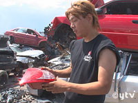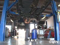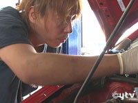 強至さんが経営を始めて4年になる「サムライモーターズ」は、 オイル交換から部品交換、修理までを手掛ける、いわゆる街の自動車整備工場。経営者で整備士でもある強至さんのほか、メキシコ人の従業員2人が働いている。持ち込まれる車は1日20台以上。車社会のアメリカでは、車の使用頻度は日本と比べものにならないほど多く、整備工場は日常生活に欠かせない場所なのだ。