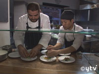 寛さんが働くのは、3年前にオープンして、たちまちローマのトップレストランの一つに数えられるようになった人気店。コロンビア人の料理長・ロイさんはテレビでも活躍する人気シェフだ。和食やフレンチの要素も盛り込んだクリエイティブなイタリアンは、海外からもお客が訪れるほど評判が高い。ロイさんの下、厨房で働くスタッフは9人。寛さんは、料理長、“スー・シェフ”に次ぐ3番手の“ジュニア・スー・シェフ”としてメインディッシュを任されている。