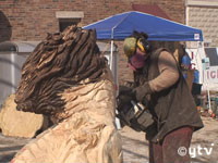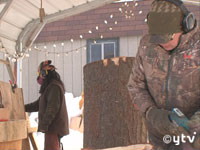 亜弥さんはアメリカ各地で行われるチェーンソーカービングの大会やイベントに参加し、自らの作品の販売を行っている。今回はペンシルベニア州リッジウェイで毎年開催されている世界最大級のチェーンソーカービングのイベントに参加。今年は世界各国から168人のカーバーが集まり、9日間にわたる期間中、各自のブースで作品を実演販売する。亜弥さんは7種類のチェーンソーを大胆かつ繊細に操り、ドラゴンやアライグマ、ニワトリ、ウサギなど、主に野生動物をモチーフに、丸太に命を吹き込んでいく。