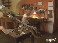 弦楽器の中では最大の大きさを誇るコントラバス。クレモナでコントラバスを作り続けている職人は3人ほどしかいないという。電動工具を使ったダイナミックな製作作業は、大きなコントラバスならでは。弦楽器職人というよりも、家具職人の仕事に近いという。その一方で、本体にネックを取り付ける際の削り出しなどには、一転して繊細さを要する。1ミリでも削り過ぎると、継ぎ目に隙間ができ、すべてが台無しになるという。