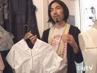 彼が手掛けるのは、日本の折り紙から発想したユニークなドレスやシャツなど、斬新で独創的なデザインの服。「“作品”にならないように気を付けている。“作品”は自分のものだけど、“商品”は買ってくれた人のものだから」という洋二郎さん。デザイン性を追求する、作品としての服を極めたいが、着る人のことを考えた“商品”として売れなければ、ビジネスとしては成立しない。デザイナーとして、常にその葛藤を抱えているという。美代さんは「彼は本来、ずっと作品を作っていたい人。私はよく彼に“お客さんの気持ちになって服作りをしていない”と言っているのですが、やっとそういう服作りをするようになってくれた」と喜ぶ。最近では、ようやく少しずつ注文も入るようになってきたという。