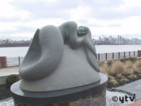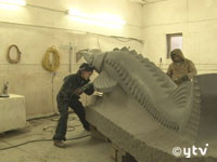 美奈子さんが制作活動をするのは、ペンシルバニア州レイックウッドにある作業場。現在彫っているのは、ニューヨークを流れるハドソン川の“主”であるチョウザメをモチーフにした大きな作品だ。すでにハドソン川の畔には美奈子さんの彫刻が2体飾られており、それらを購入した会社が、新たに発注してくれたものだという。これまで数々の賞を受賞してきた美奈子さん。最近はこのような野外展示用の巨大な彫刻の依頼が増えているという。